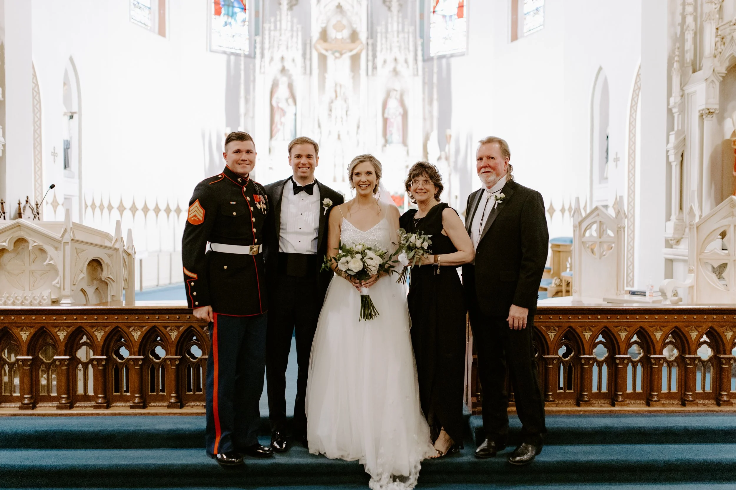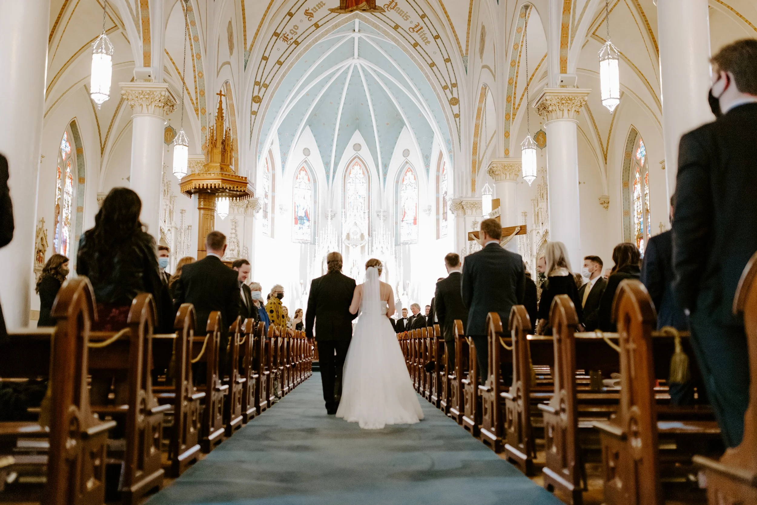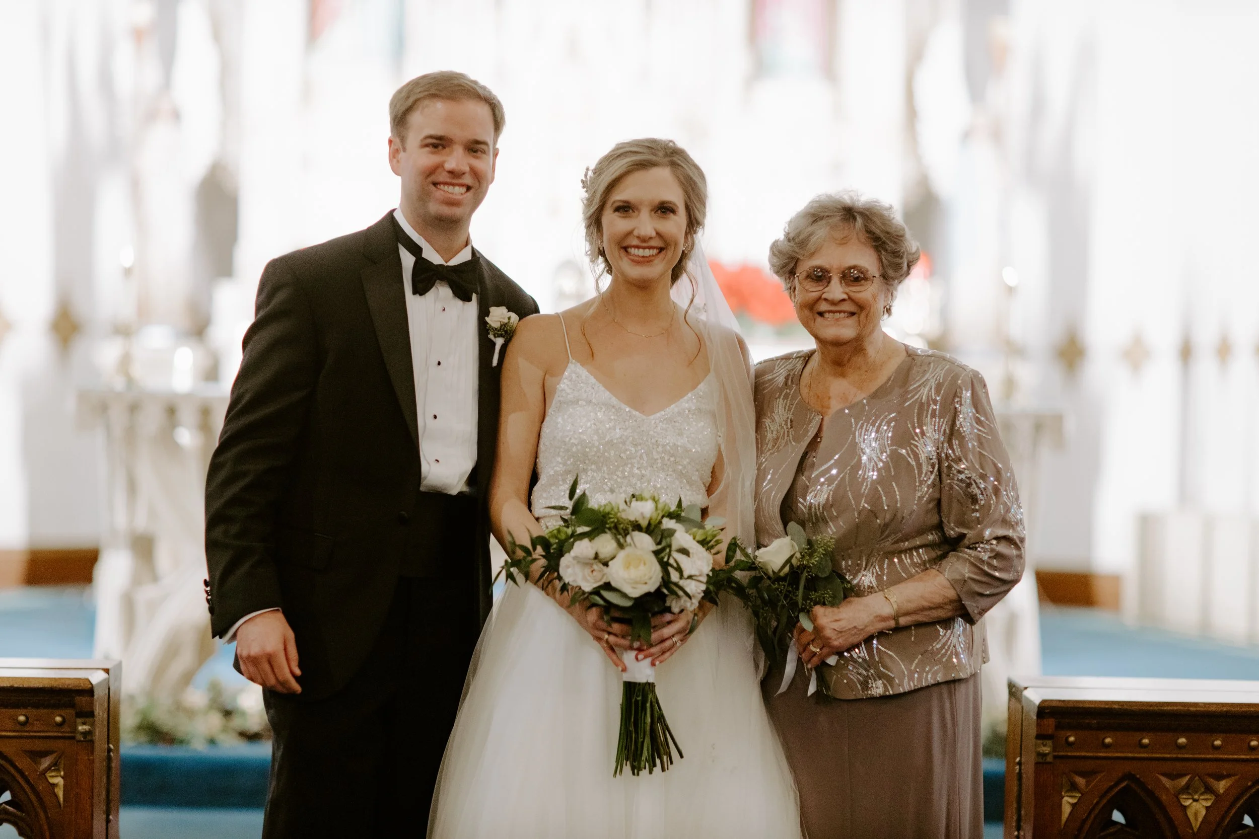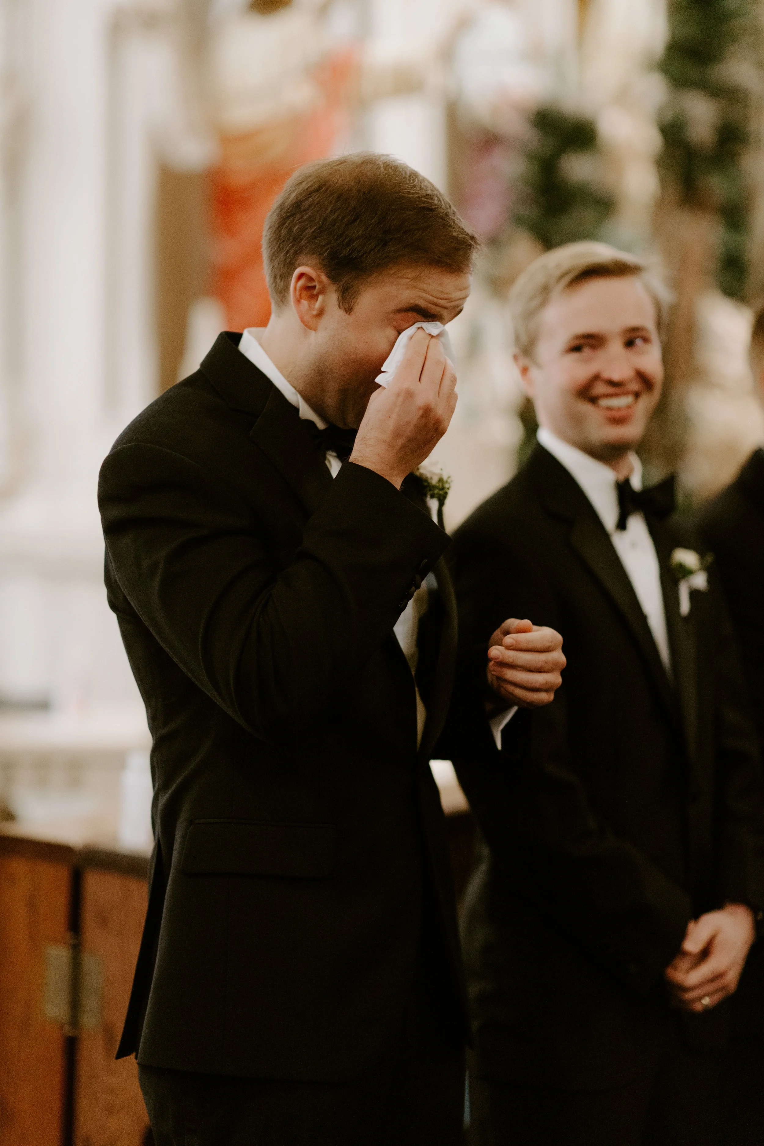 Our wedding ceremony was set for 2pm at Saint Mary’s Church, which is the parish where I grew up. Pre-ceremony, I did a “reveal” with my father and brother. Seeing their reactions was so special (James shed a tear - so sweet!).