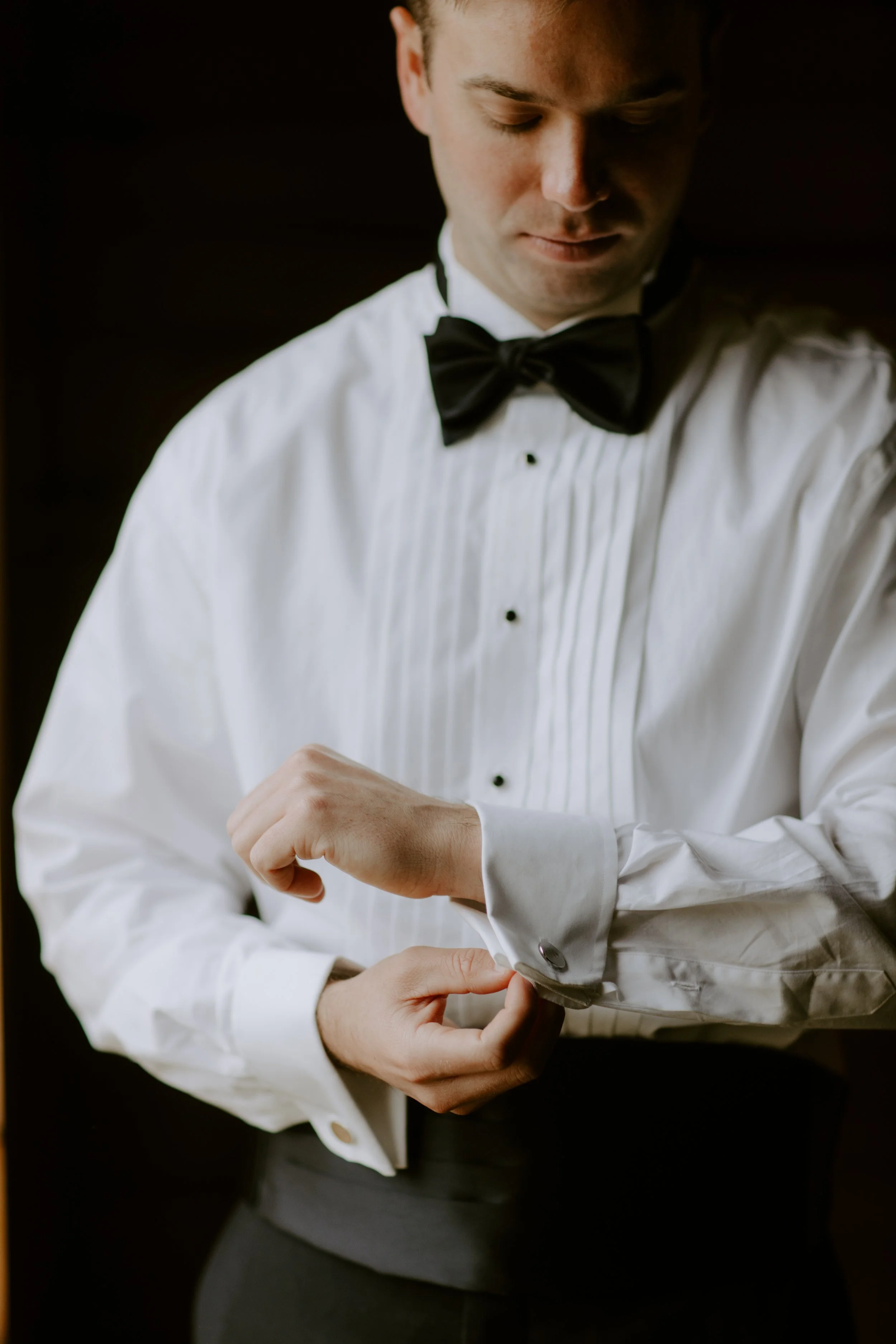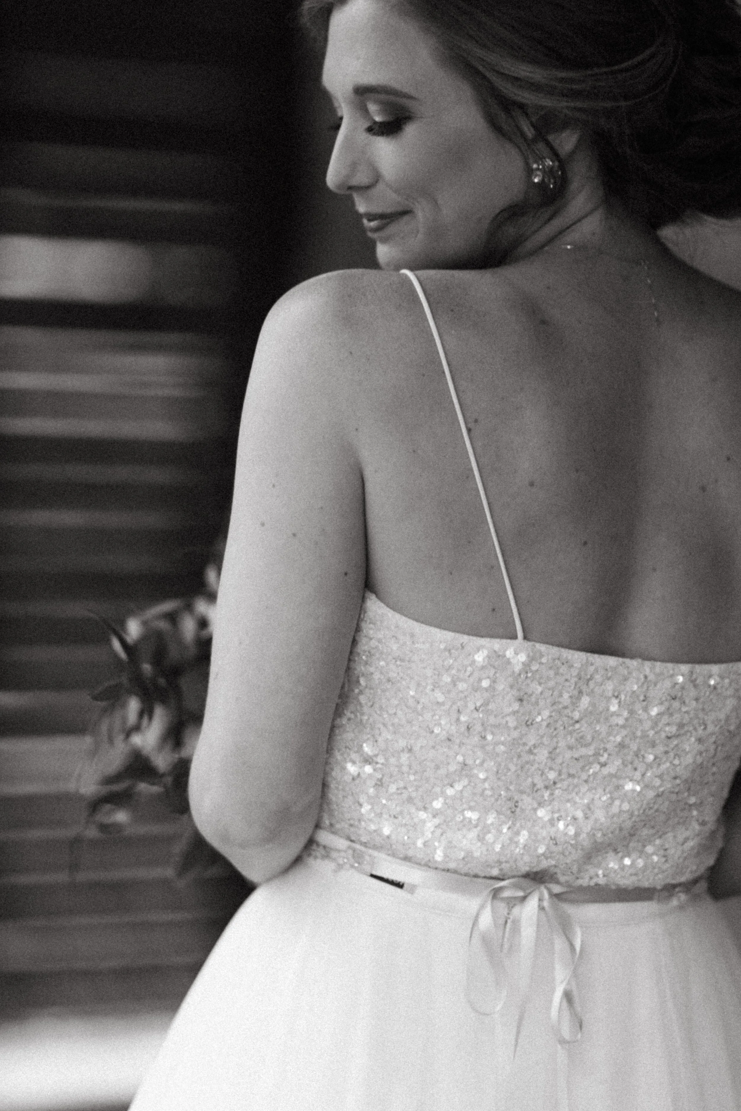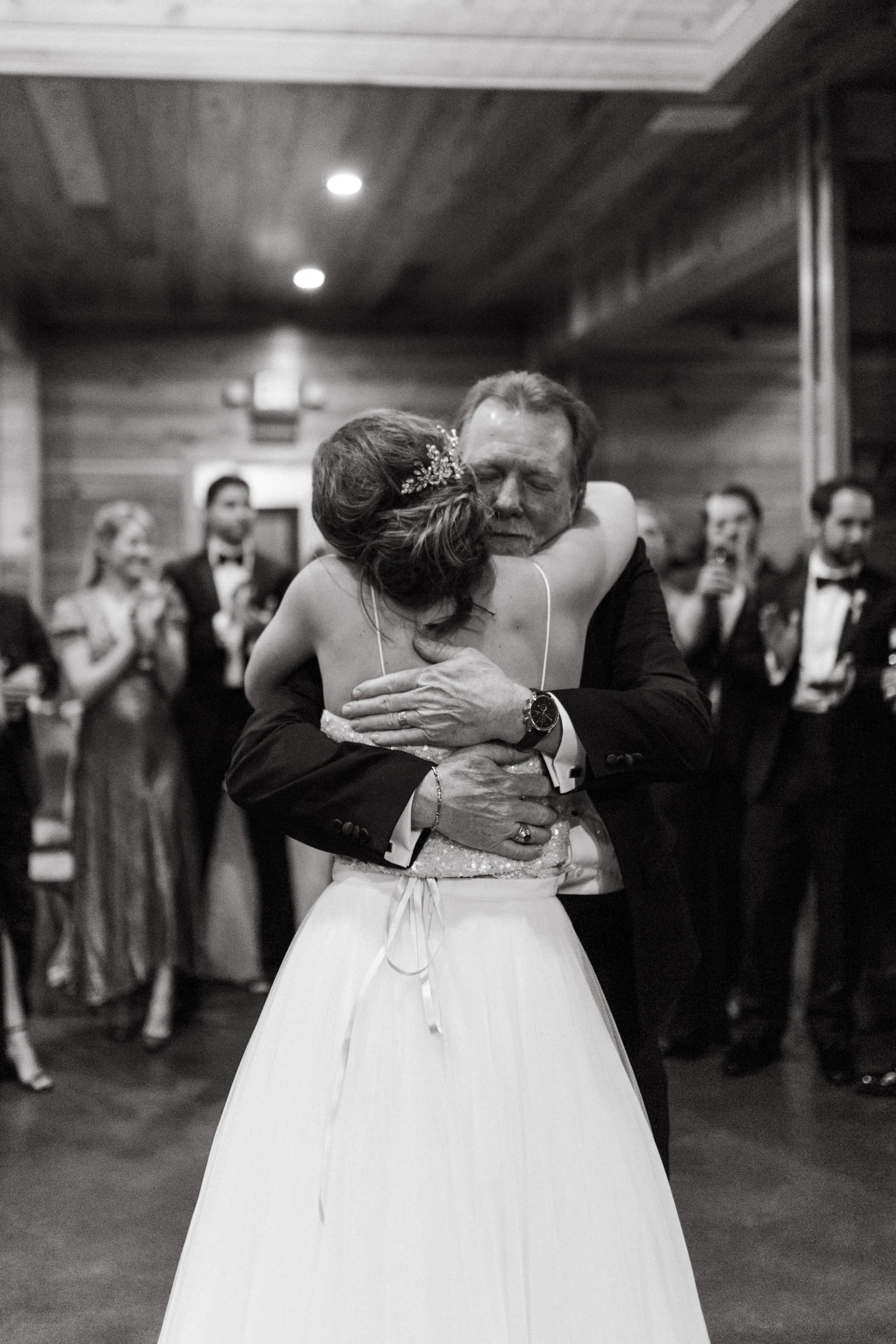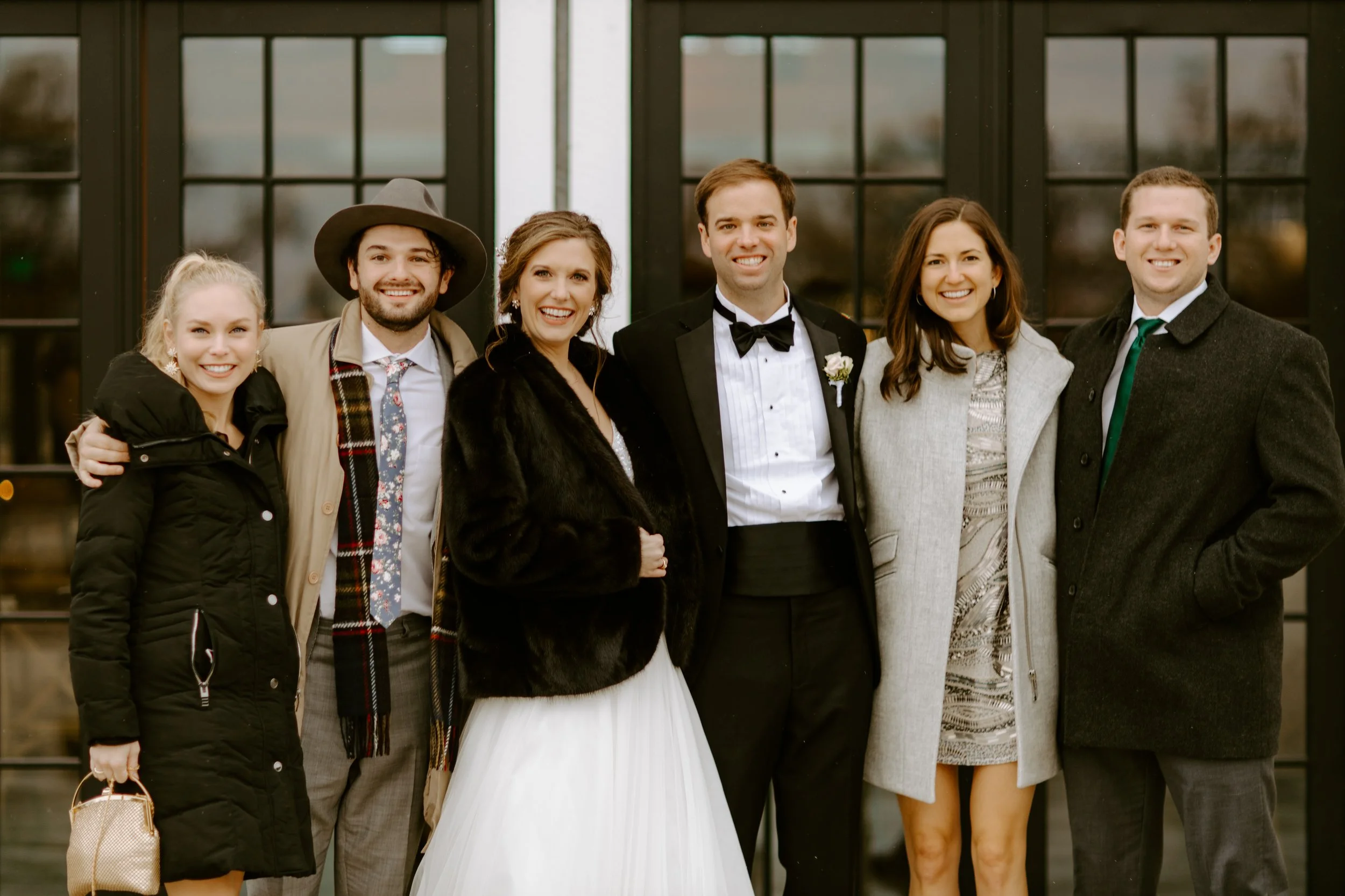 The morning brought feelings of nervous excitement! After my bridesmaids woke me up to singing “Going to the Chapel” (TOO CUTE), the girls and I bundled up for a quick drive over to Hoffman Haus where we got ready in one of the cabin suites. My bridesmaid, Ashley, had put together a “GETTING READY TO WED” playlist, so we listened to some fun tunes while enjoying mimosas and having our hair & makeup done. Because we were having a NYE wedding, our dress code was “Texas Black Tie Optional”! The boys were wearing tuxedos and I loved the idea of having my best gals in long black gowns. After doing some “long black gown” googling, I opted to have my bridesmaids pick their own black dresses (thankfully, black is an easier color to match). Gowns are expensive, so I wanted them to be able to re-wear the dresses! And GOODNESS my gals looked gorgeous!!