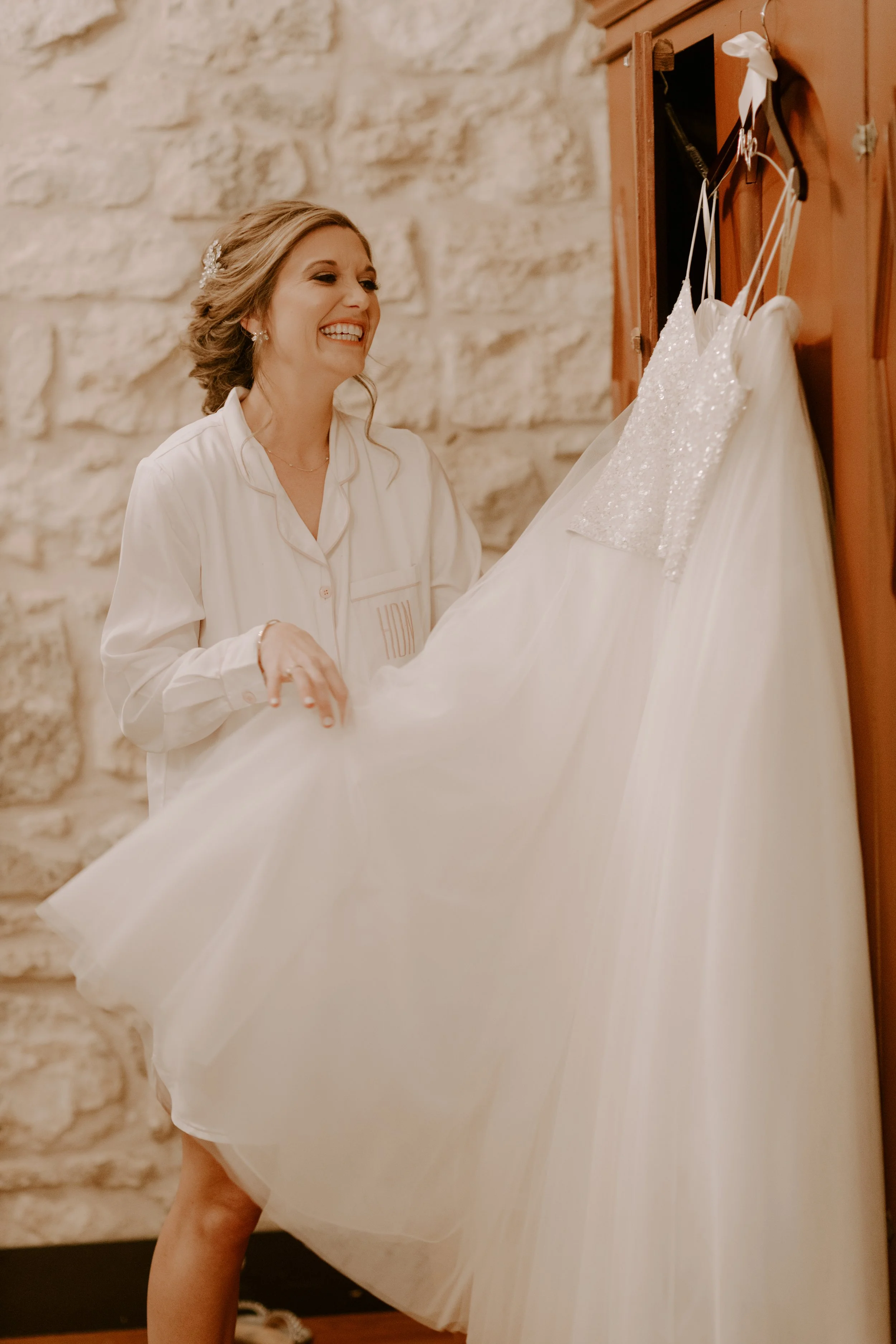 I woke up on our wedding day to the sound of rain hitting the roof of our B&B. A few of my bridesmaids and I had spent the night at The Evers House (formerly the Inn on Baron’s Creek). The owners renovated an old historic Fredericksburg home into a beautiful inn with multiple bedrooms, a shared kitchen & dining space, and each morning they would leave a picnic basket with breakfast goodies at your door. It was perfect for us! It allowed the hubbies to also stay in the same place.