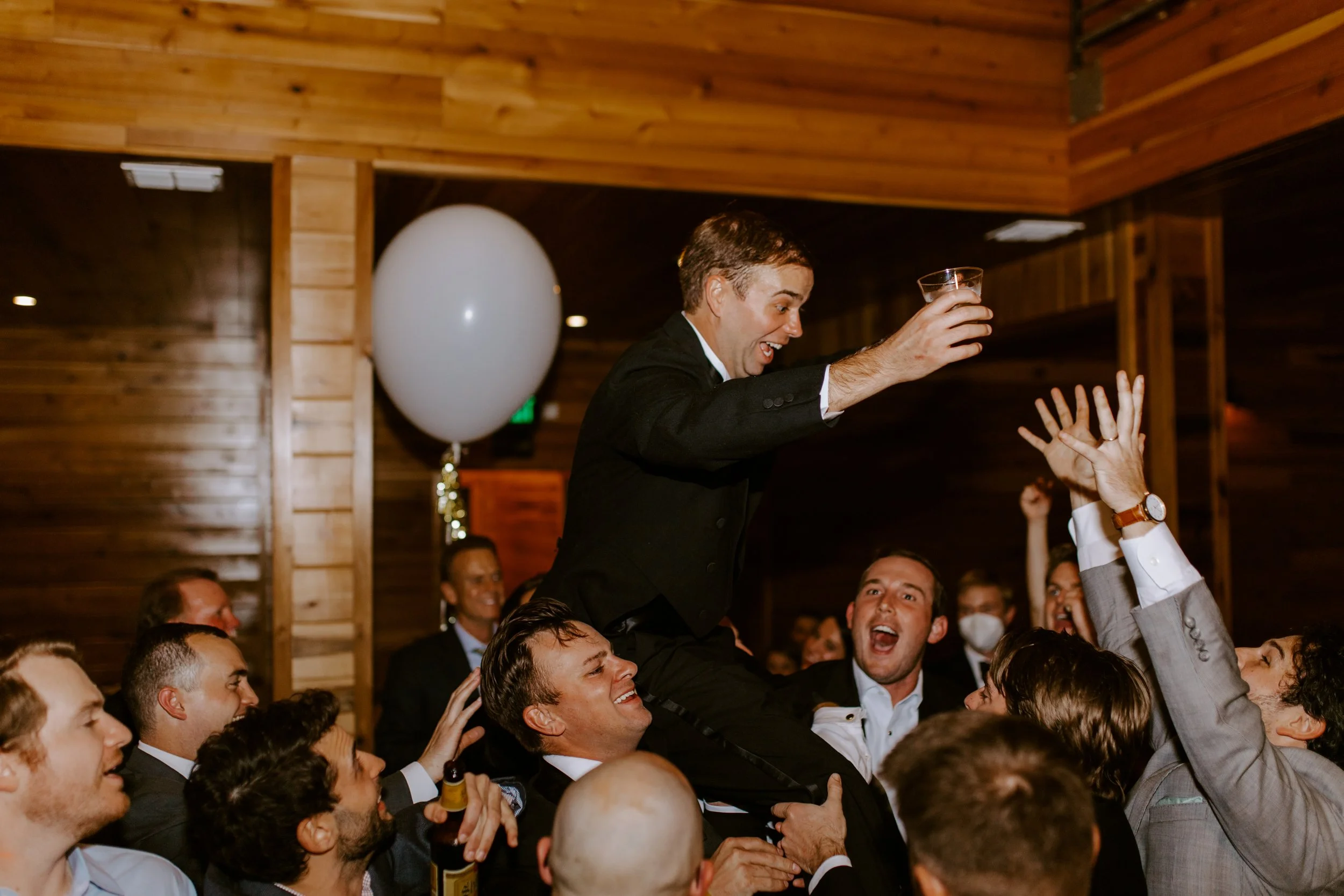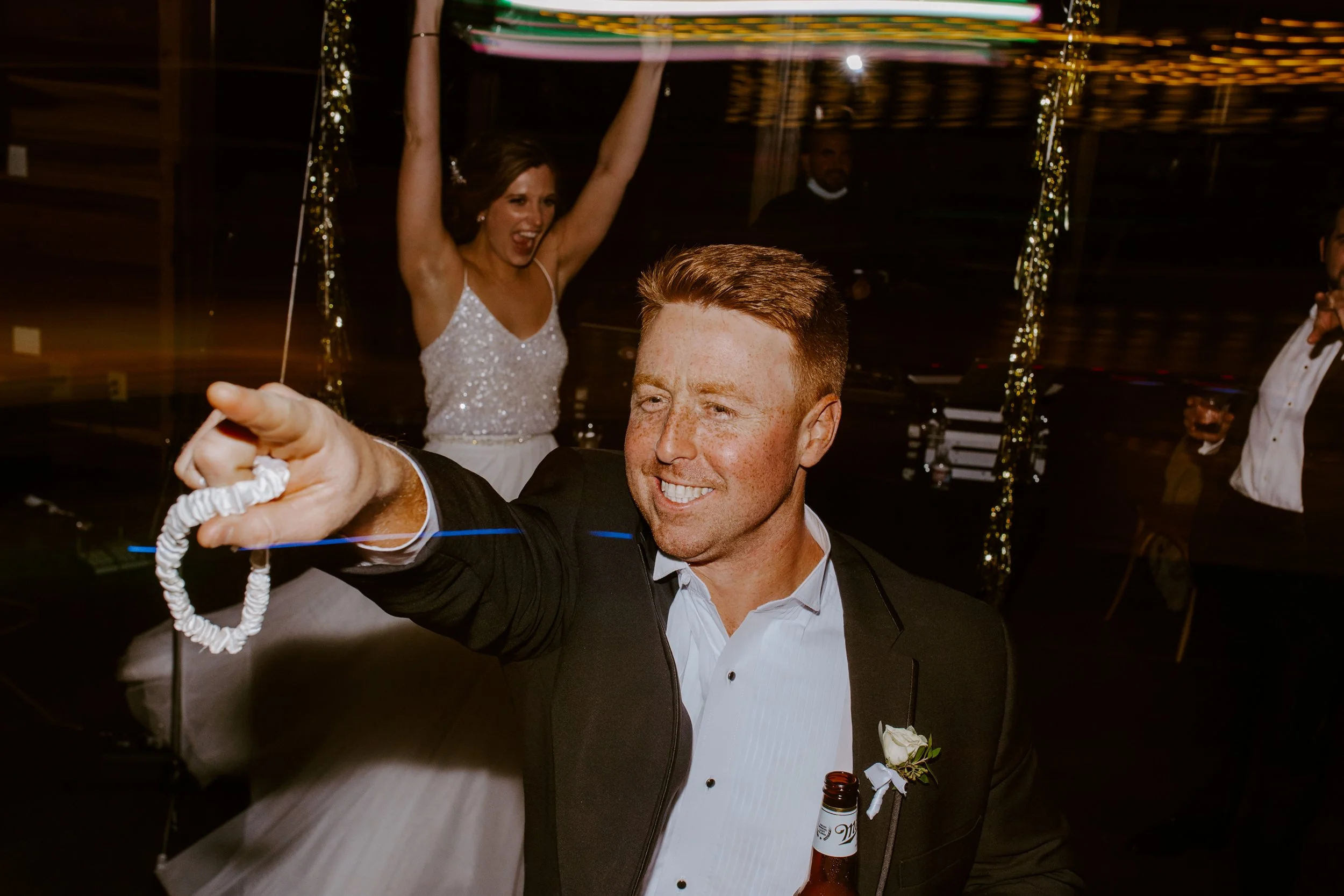 Then. THEN. It was time to party. Our signature cocktails were bourbon with a splash of water (his) and a paloma (hers). My favorite food is Mexican, so we designed our menu around latin cuisine with chips & queso, a taco bar and all of the sides. There were first dances, toasts and heartfelt hugs. George opted to bash a champagne piñata while blindfolded for his garter toss. My maid of honor caught the bouquet (and she was, indeed, the next person to get married!). George and I changed into light-up dance shoes and burned at least 1,000 calories on the dance floor.