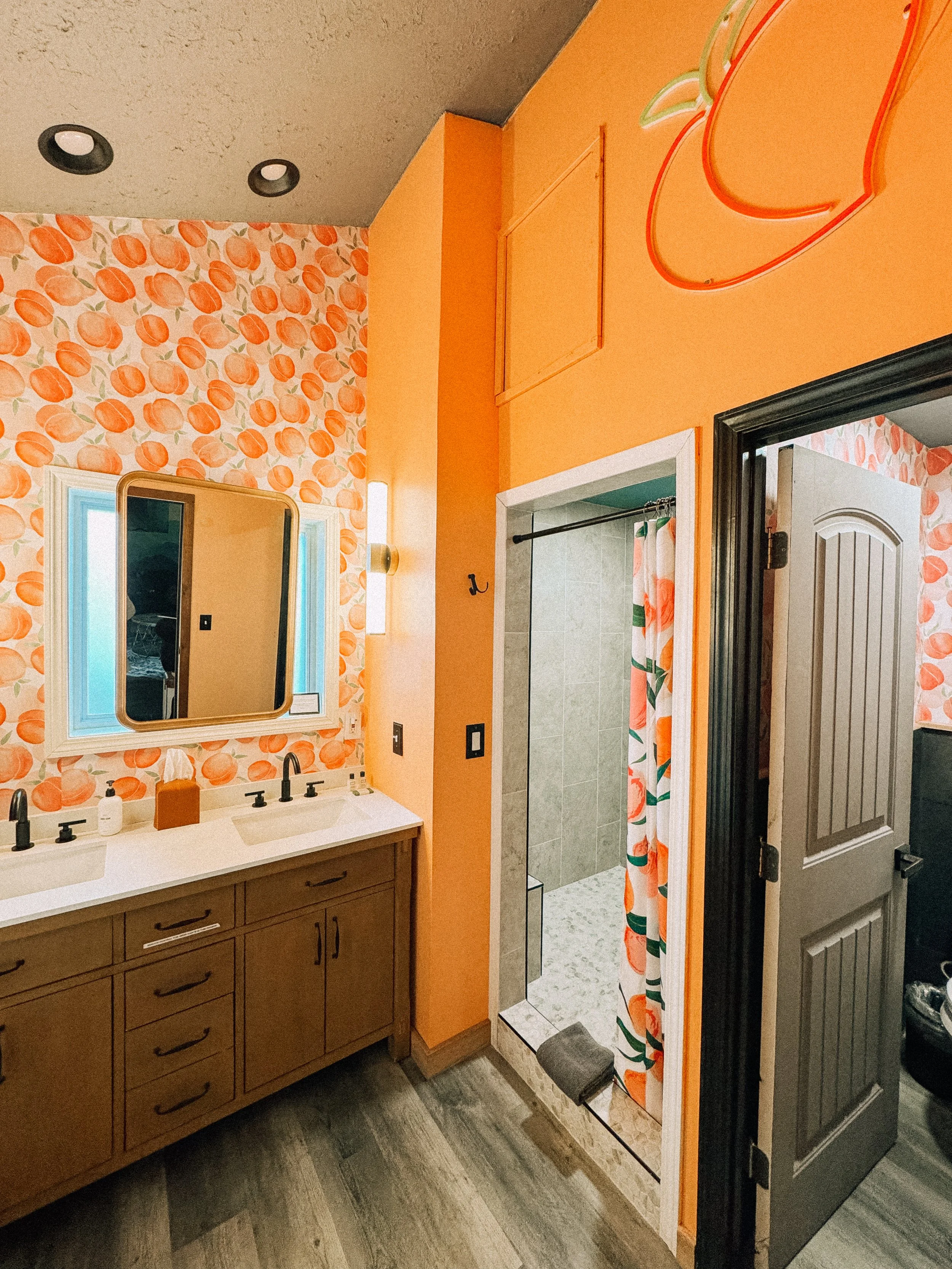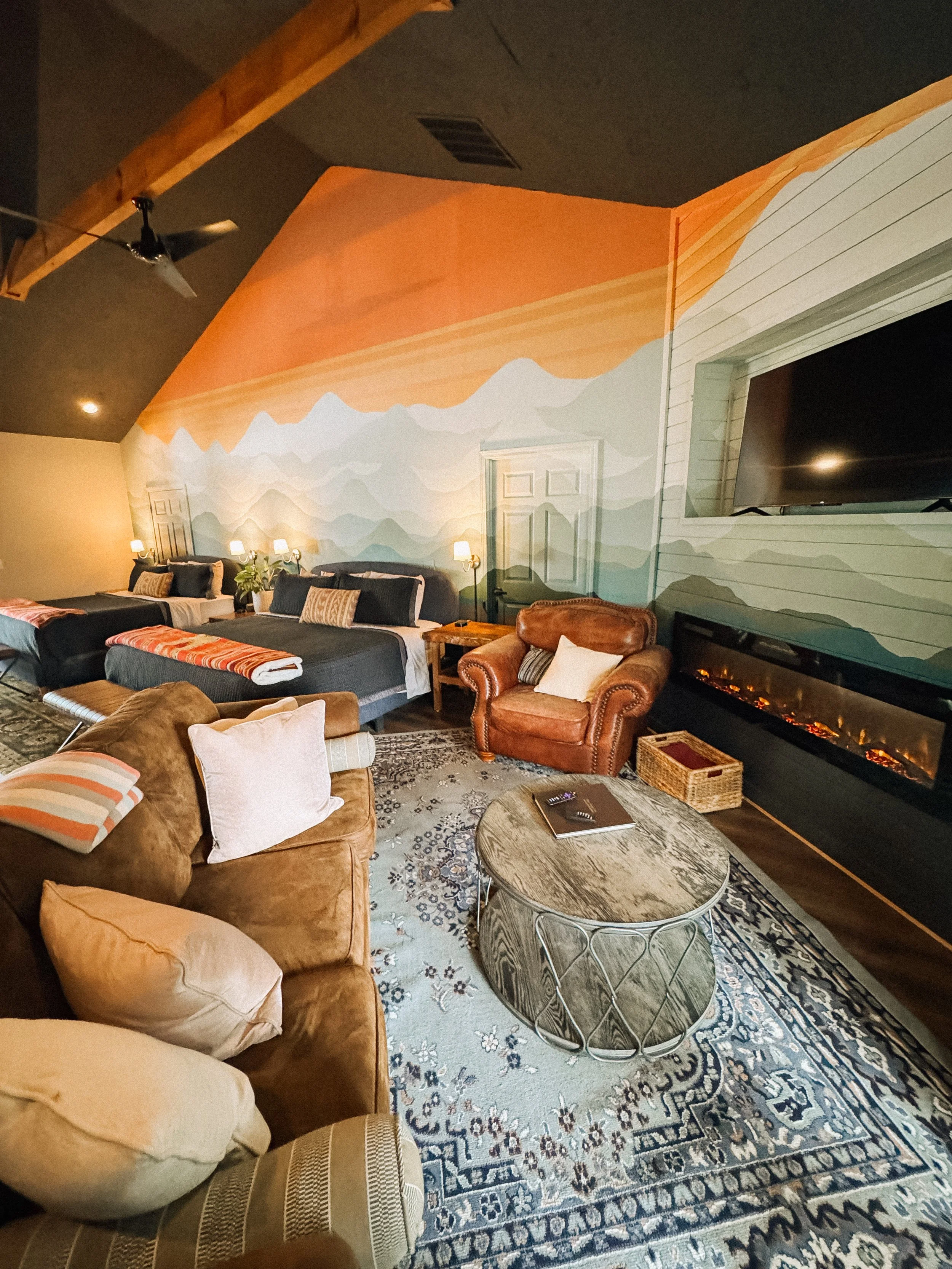 We stayed in The Lodge Suite, which is both kid- and pet-friendly. The space includes a full kitchen, multiple sitting areas, two king beds, a screened-in porch, and (of course) a cozy electric fireplace. If we bring Addy back for her own Blue Ridge experience, I know she’d love it. There’s plenty of room to roam, breakfast can be delivered for an easy “dine-in” morning, and the location is perfect for families who love to explore but are still navigating life with little legs in tow.