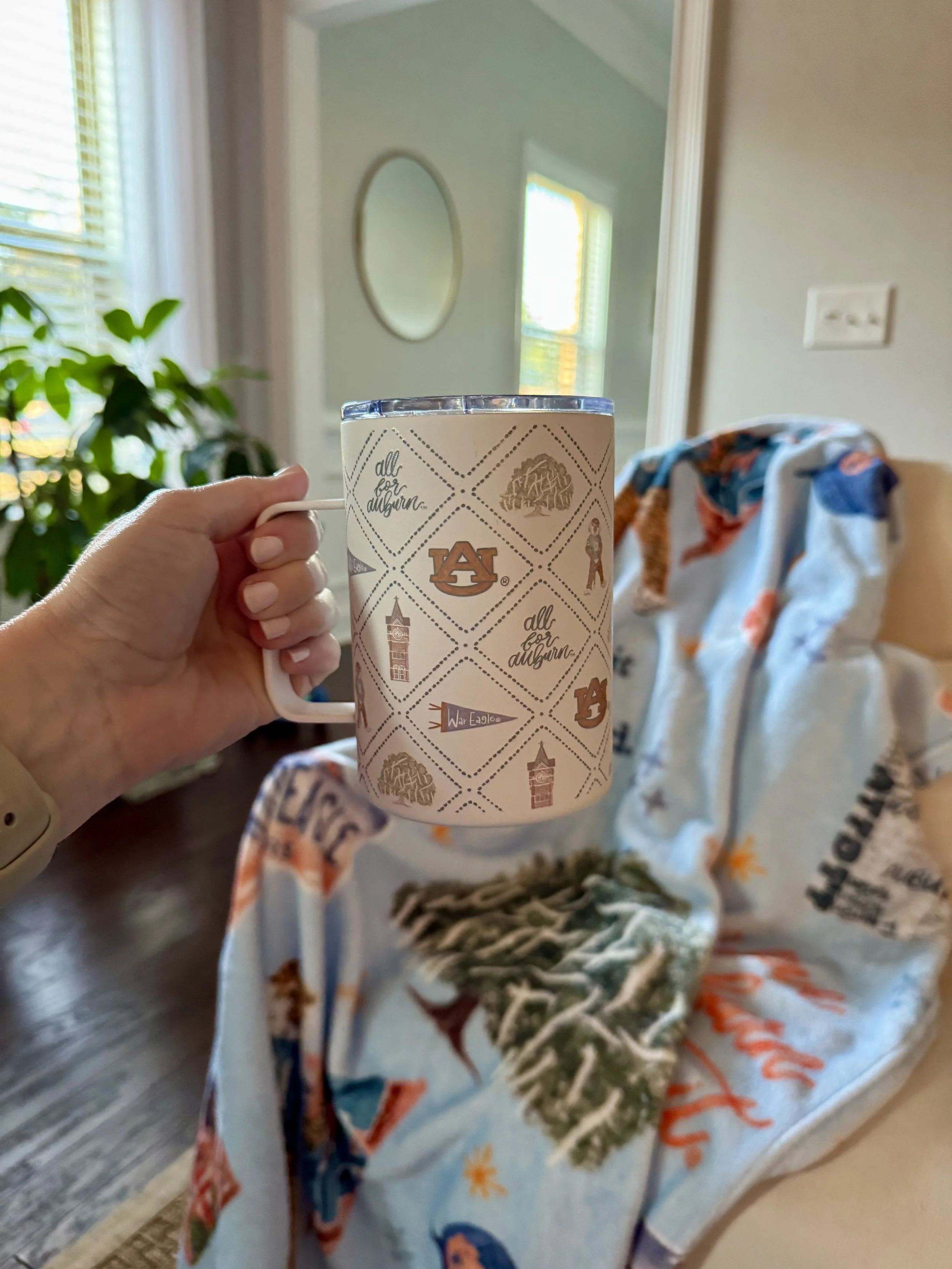 I personally love their Auburn travel mug, and Addy is obsessed with their fuzzy Auburn blanket (which honestly makes a great dorm or apartment throw).